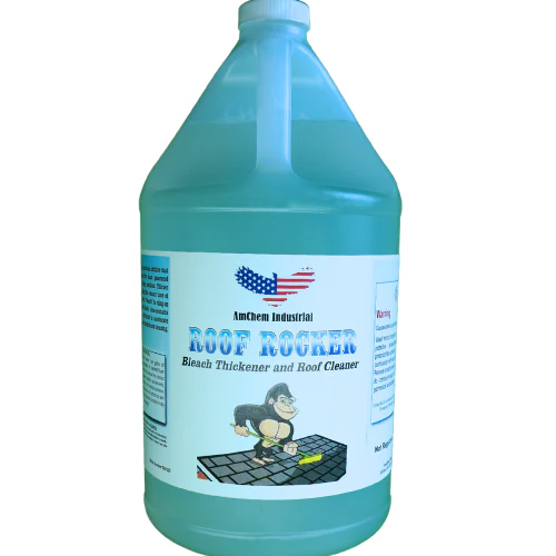Roof Rocker is a non-hazardous additive that is designed to increase the foam generated with your bleach cleaning solutions. Thicker foam will aid in extending the contact time of 12.5% sodium hypochlorite “bleach” to cling on to roofs, walls, etc. Roof Rocker also contains an extra penetrating surfactant to accelerate a more effective and advanced bleach cleaning.