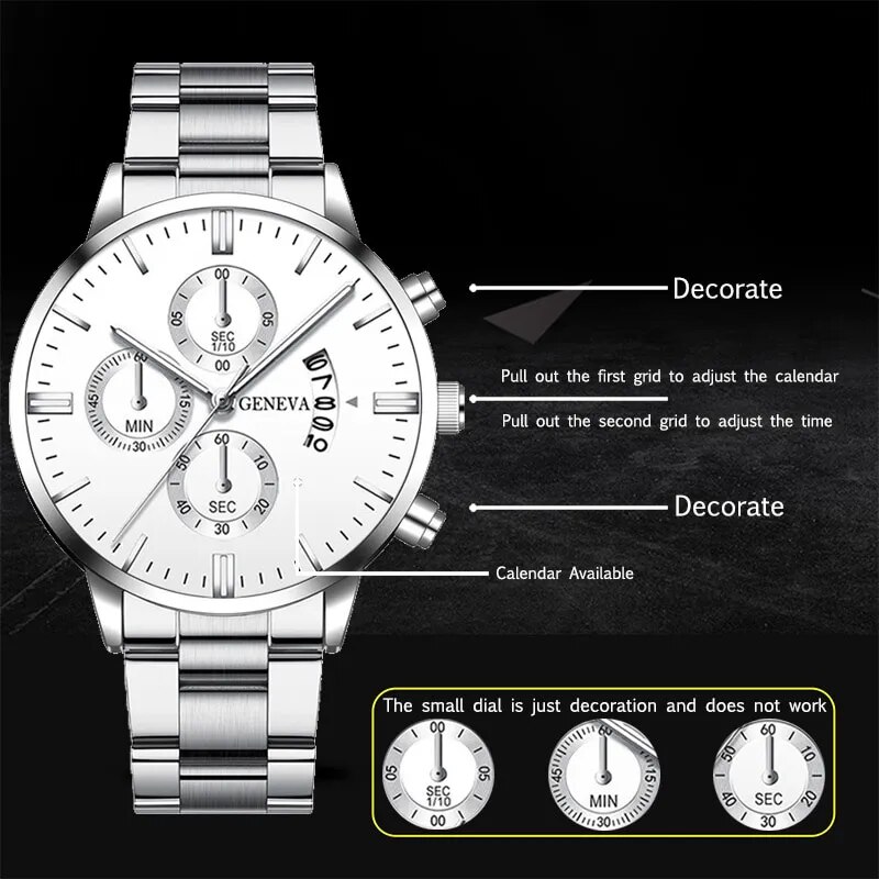 Notice: 3 Fake sub-dial just decration the watch case, it don’t work